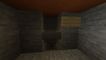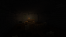 Кімната заряджених кріперів та лучників на конях. Кріпери швидкі та потужні, мають 1000 хп, тому найкращим варіантом розправи з ними було блокування вибуху щитом. Жорстоко? Але разом з тим по данжу усюди розкидані щити як натяк, не кажучи про Давній Щит та Книгу Щитів. Можливо, хтось реально хоче, щоб ви взяли із собою щити…(Яскравість на максимумі, щоб на фото було щось видно)
