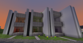 Доповнення: цей проект є нічим іншим, як майже точною реплікою квартир Хвостограду. Фактично це ділянка з трьох квартирних блоків, із мінімальними змінами заради пристосування для зведення на відкритому повітрі. Відмінності полягають у спрощеному плануванні, суміщеному санвузлі та відкритою галереєю замість загального коридору. Ці зміни були введені з метою спрощення будівництва для швидкого забезпечення житлом сезонних робітників агрокомплексу, котрий невдовзі отримав статус окремого поселення. Завдяки конструкції, ці будинки можна нескінченно подовжувати з боків, прибудовуючи нові квартирні блоки, однак за весь час у цьому не виявилось потреби. Натомість була втілена зміна плану, а саме - три стандартних блоки розташували трохи зсунутими, таким чином будинок набув "не коробочну" форму. Також його дах обладнали громадським простором для мешканців.
